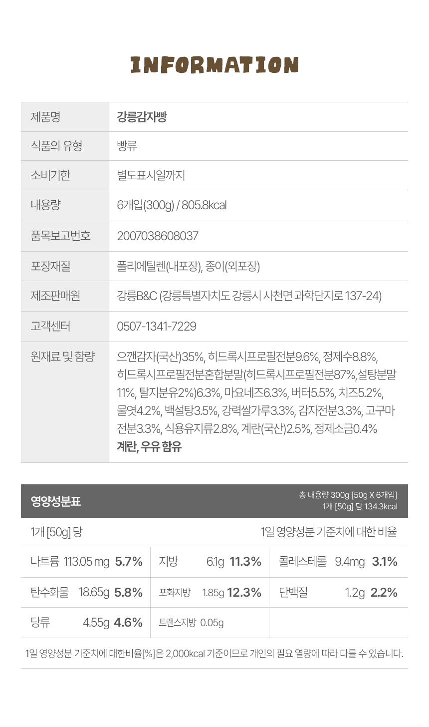 | 포장단위별 내용물의 용량(중량), 수량 | 50gx6개입 |