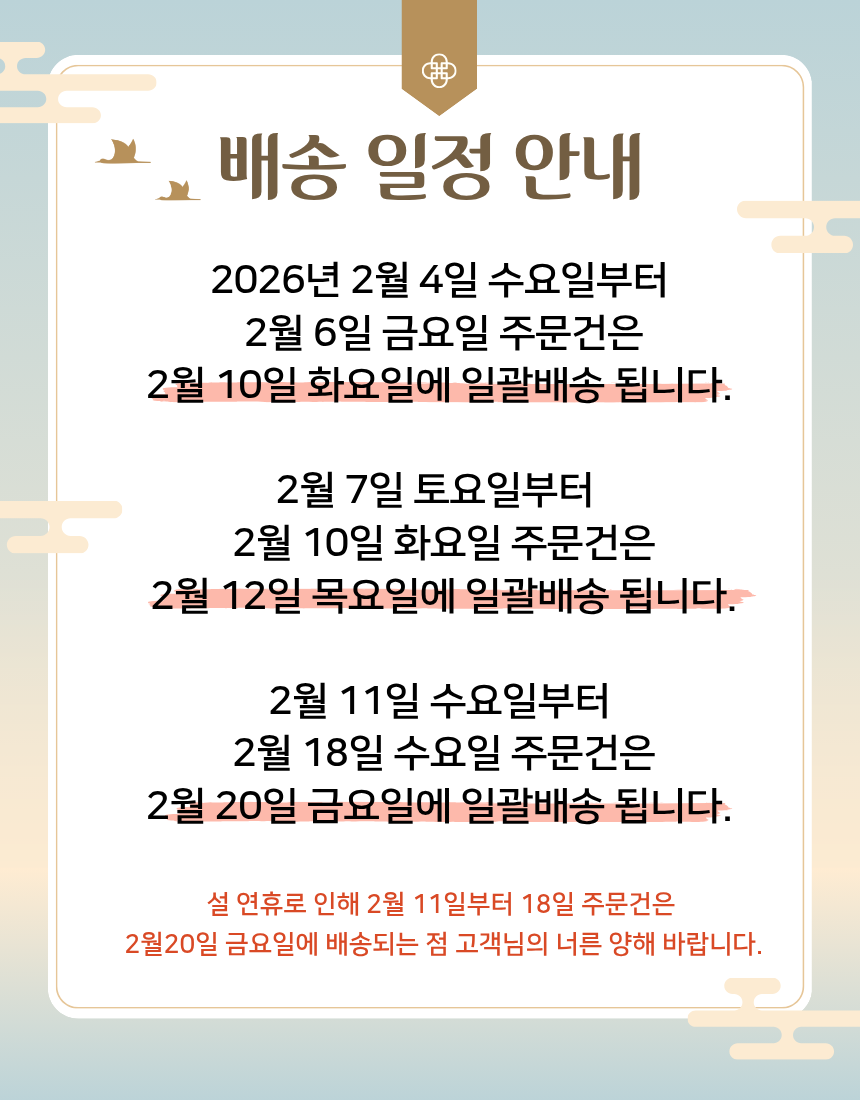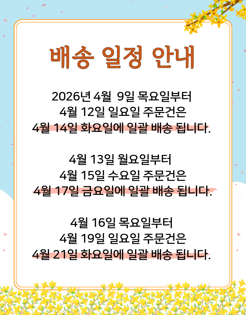 • 그 외 기간은 보냉종이박스 + 아이스팩(중형)1개로 구성되어 나가니 아이스박스가 필요하신 고객님은 옵션에 선택하시길 바랍니다.