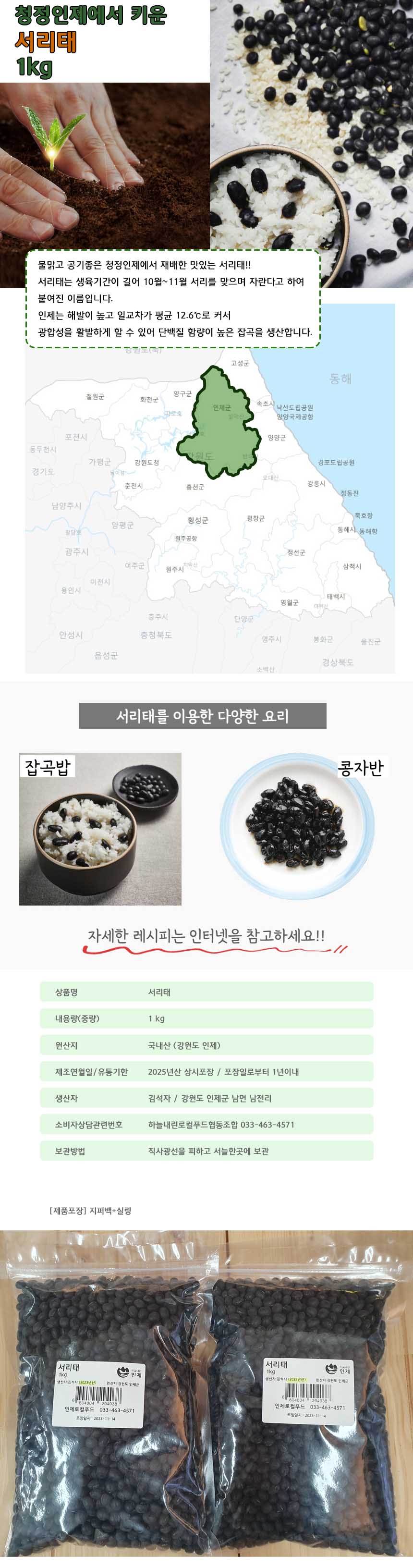 강원도 인제 서리태 2kg(1kg*2개)