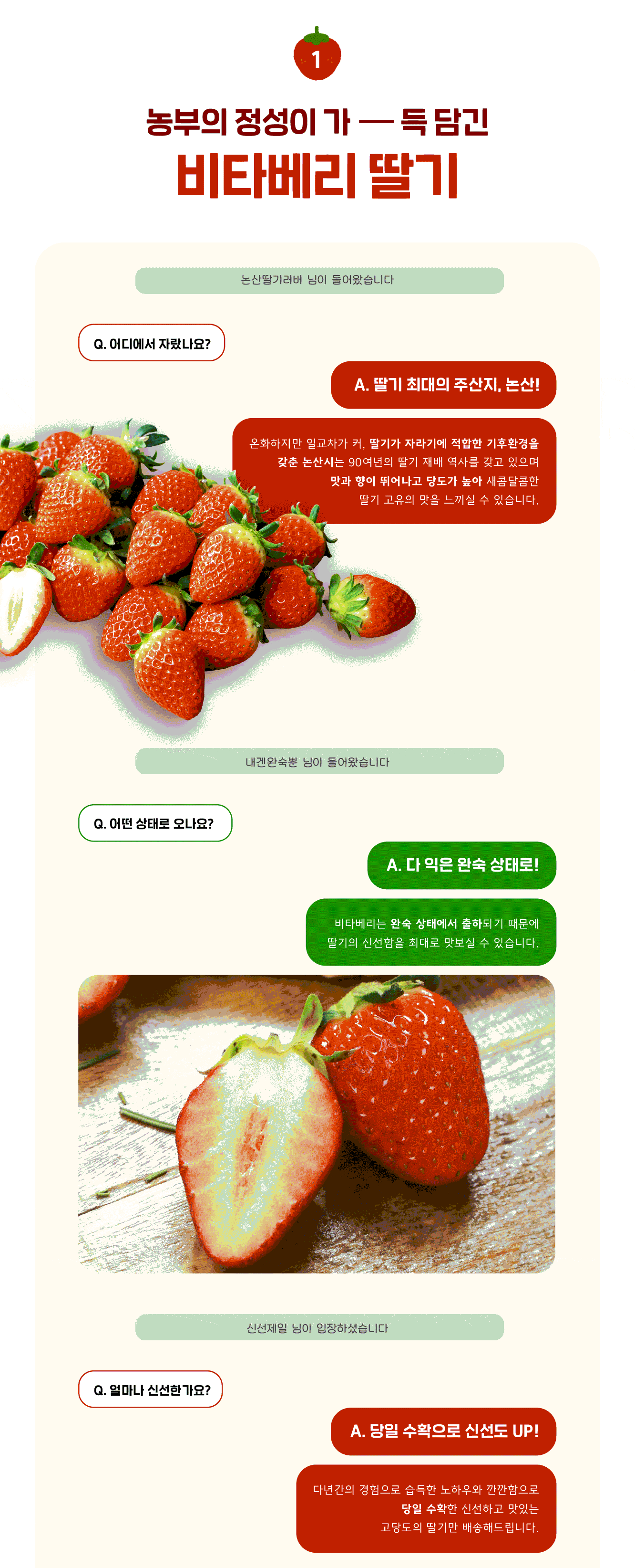 딸기는 당일 수확량, 기상 여건, 배송 물량 등에 따라