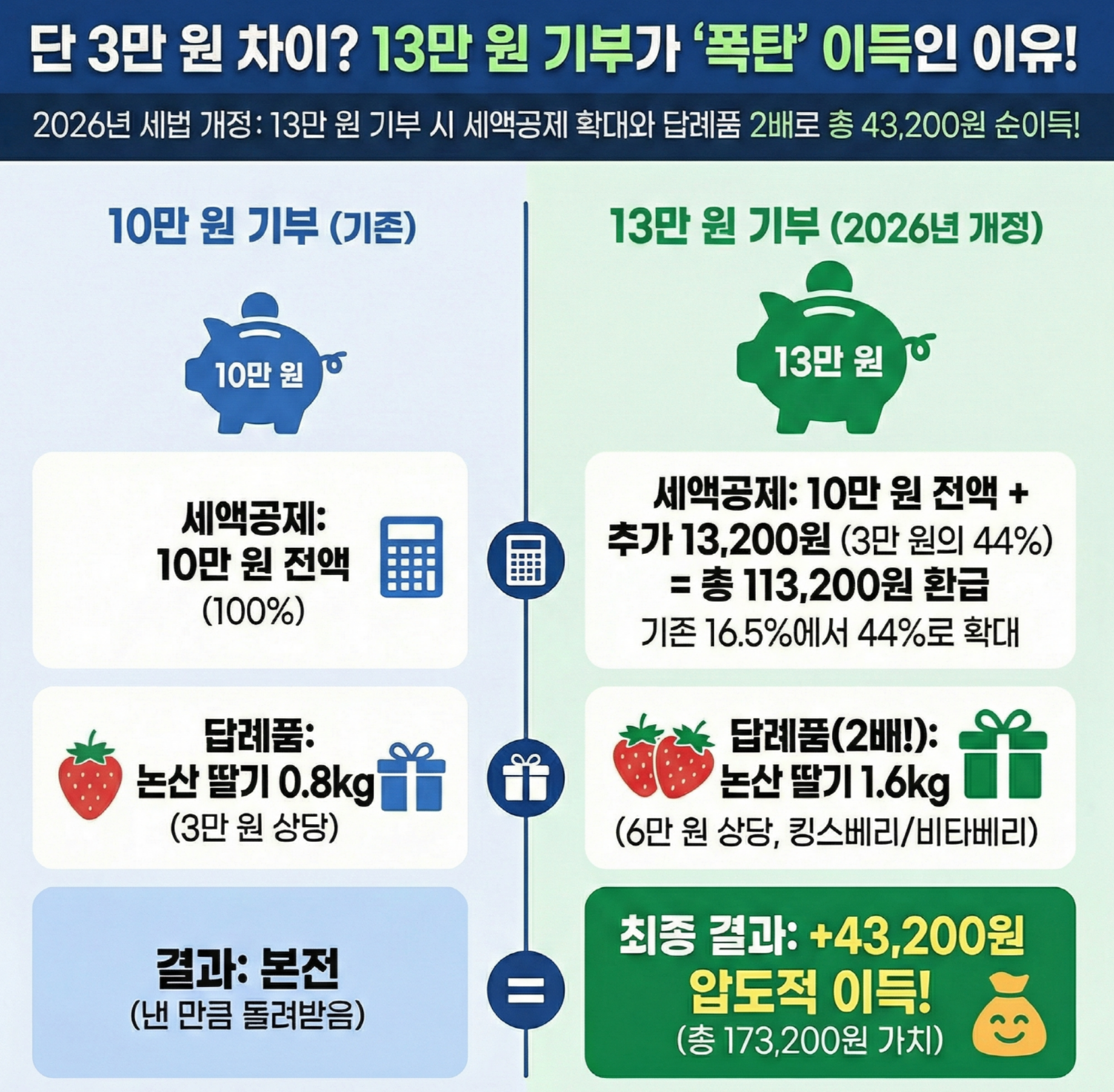 20만원 기부 시, 14.4만원 공제 (10만원+10만원의 44%)