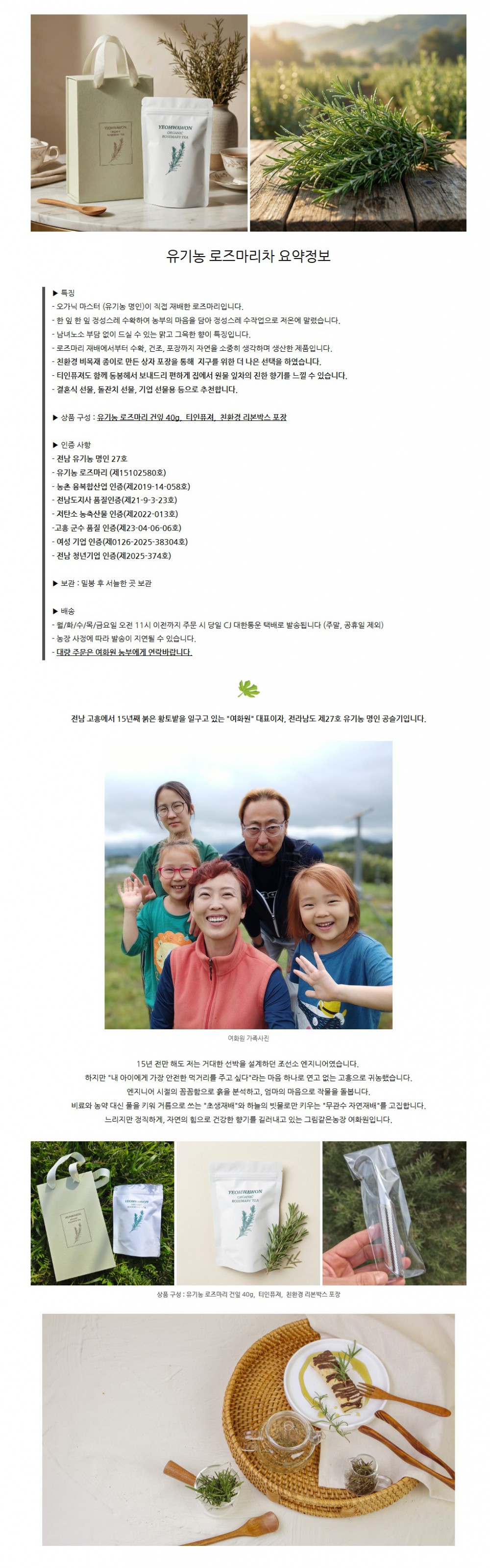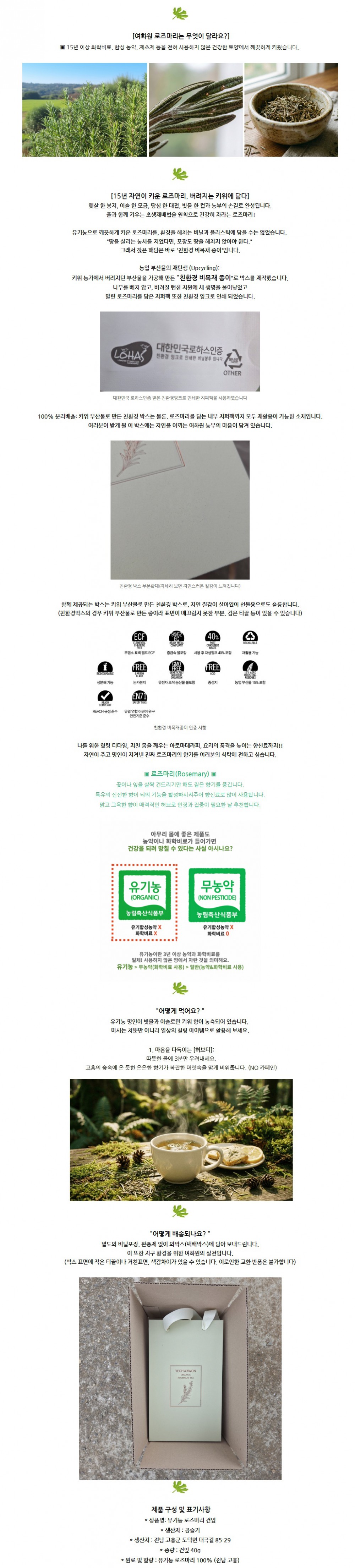 유기농 로즈마리 잎차 선물세트(로즈마리 건잎 40g+티인퓨져) 고향사랑기부제, 10만원까지 전액 세액공제 무료 답례품! 직장인은 안 하면 바보!