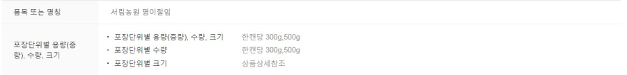 | 포장단위별 내용물의 용량(중량), 수량 | 상세정보 별도표기 |
