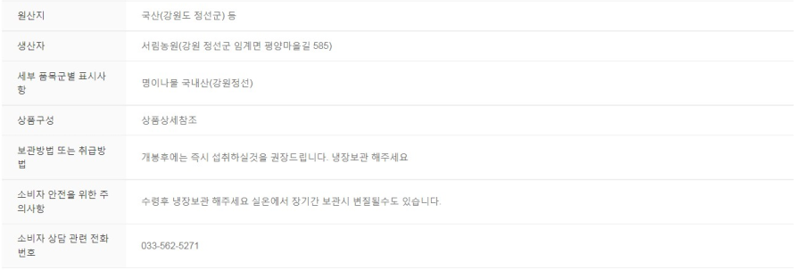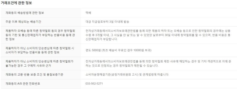 | 소비자상담 관련 전화번호 | 033-562-5271 |