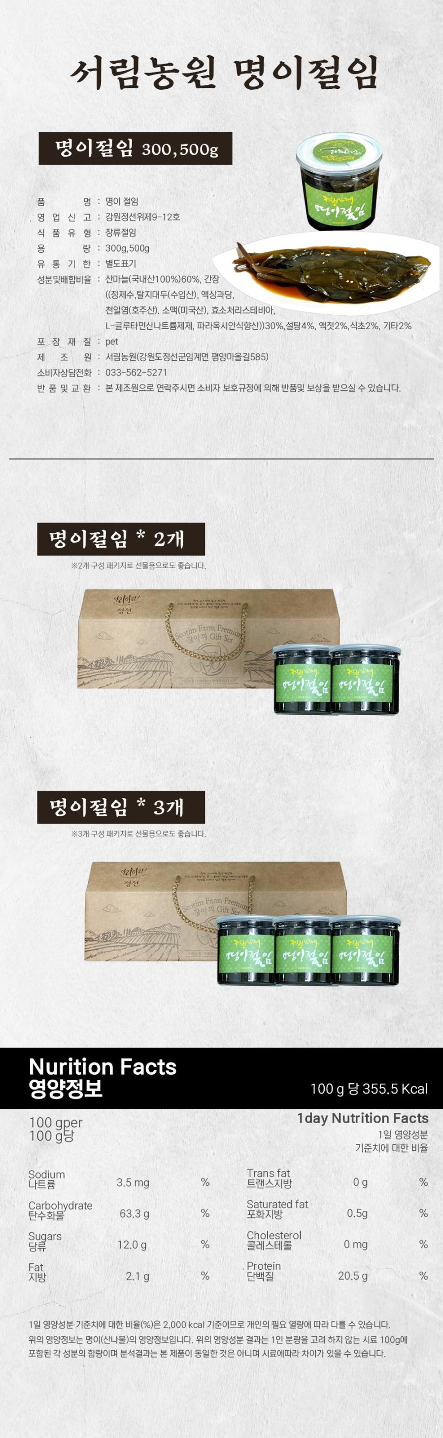 정선 명이절임 선물세트 600g(300g*2통)