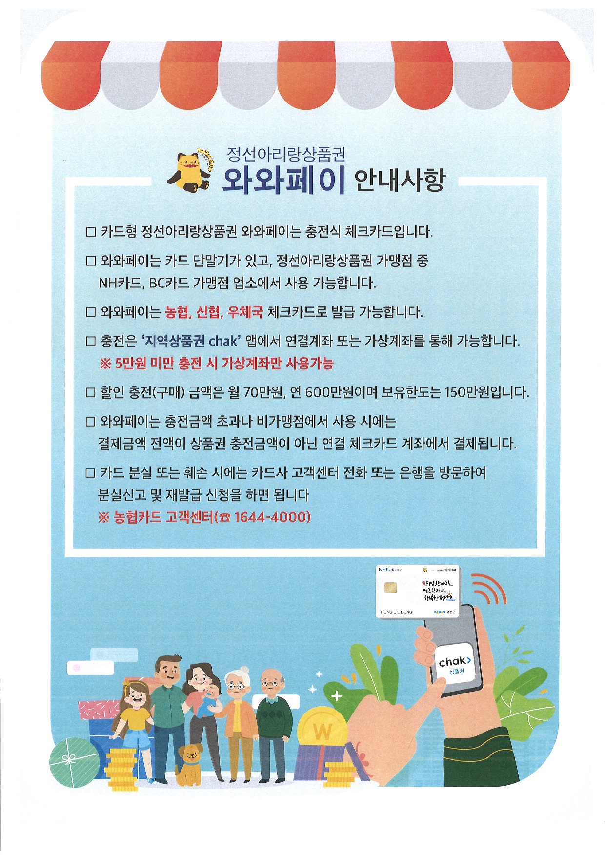 | 이용 가능 매장 | 정선군 관내 정선아리랑상품권 가맹점 |