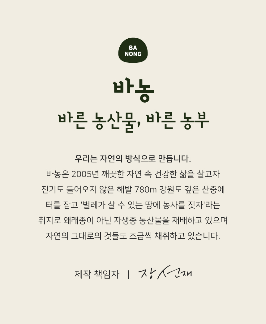| 생산자 및 소재지 | 농업회사법인(주)바농/강원도 홍천군 양지말길 11 |