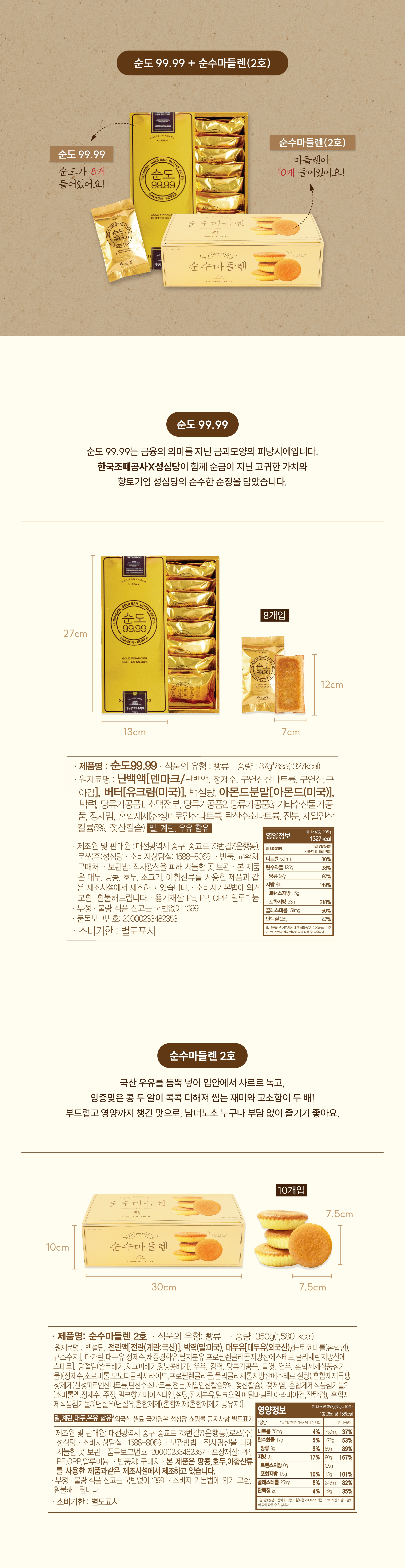 성심당 순도 99.99(37g*8개)&순수마들렌 2호(35g*10개)
