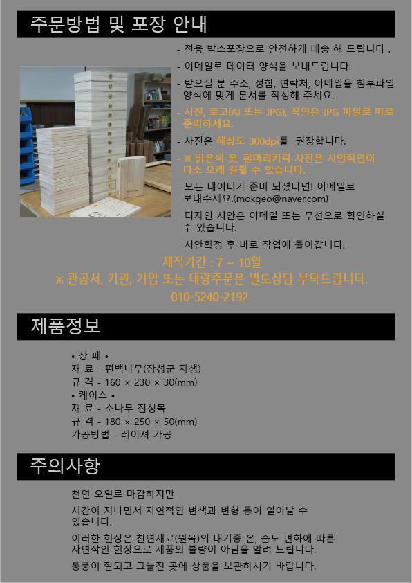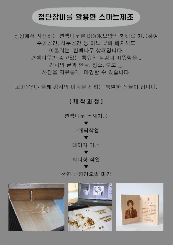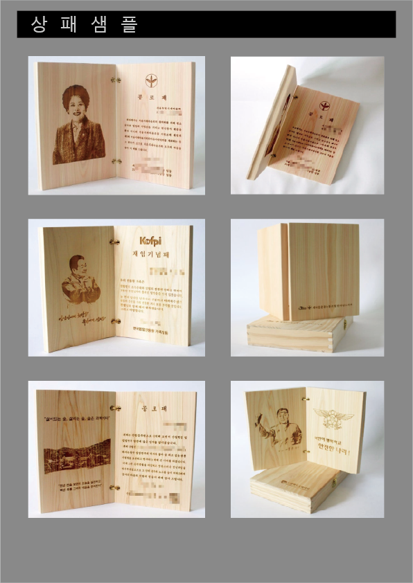 | 품명 및 모델명 | 편백나무 상패, 기념패, 표창패, 공로패 |