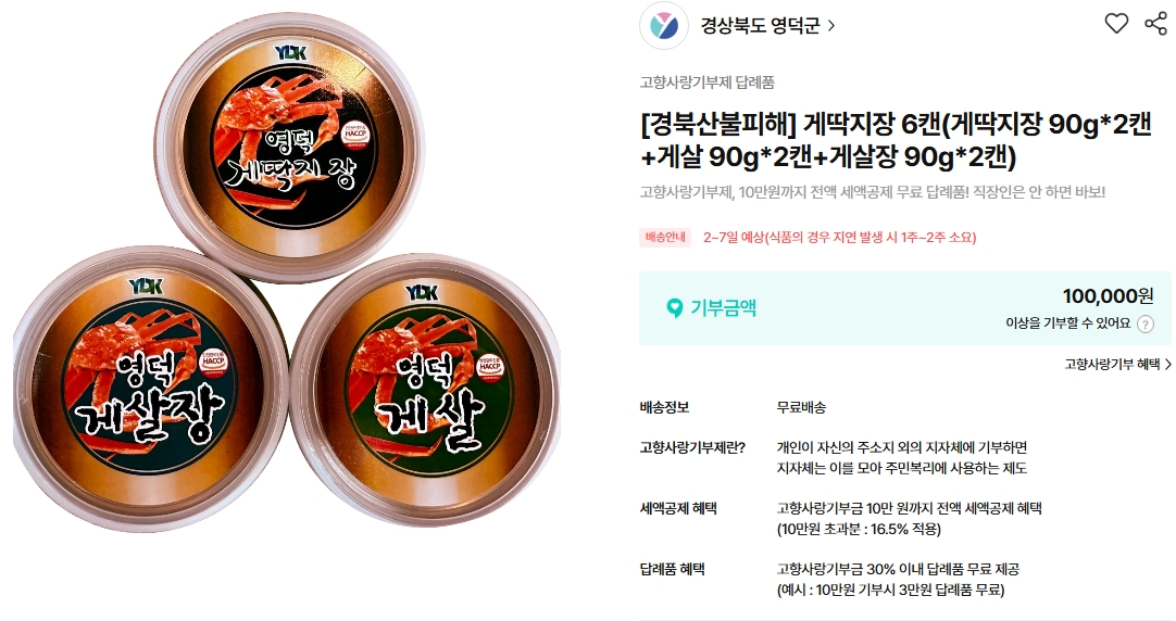3. '영덕 게딱지장 6캔 세트', 공짜로 받는 법 (고향사랑기부제)