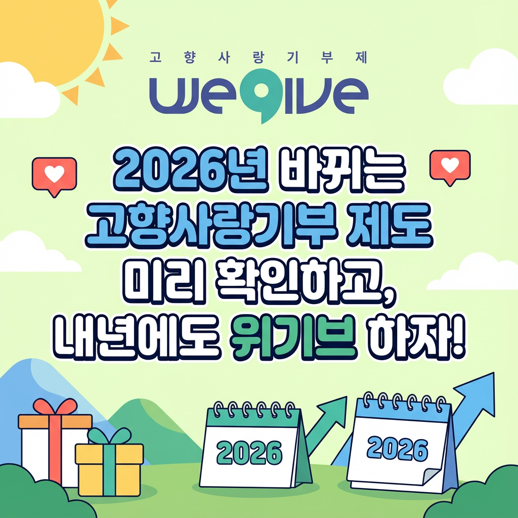 덧붙여, 이미 기부를 하신 분들께도 유익한 소식을 전달드리고자 합니다. 바로, 2026년 1월 1일이 되면 새롭게 바뀌는 고향사랑기부제에 대해 알려드리려고 하는데요.