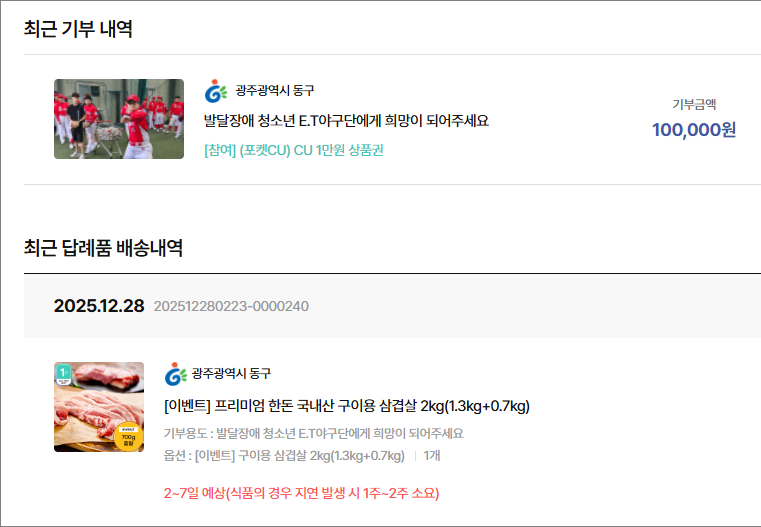 며칠 후면 2026년임. 얼른 기부하고 답례품도 받으시길!