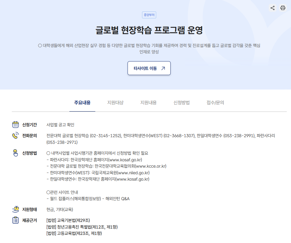 정부에서 운영하는 글로벌 현장학습 프로그램은 해외 산업체에서 직접 실무를 경험할 수 있는 제도입니다.