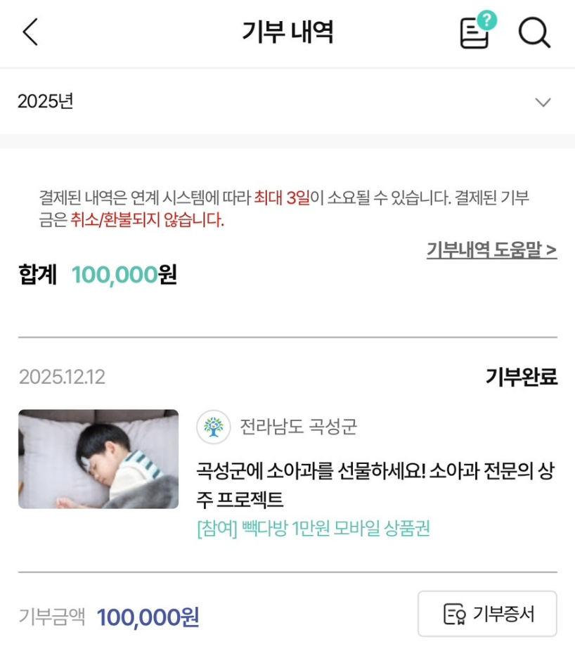 소아과 전문의 상주 프로젝트에 기부!