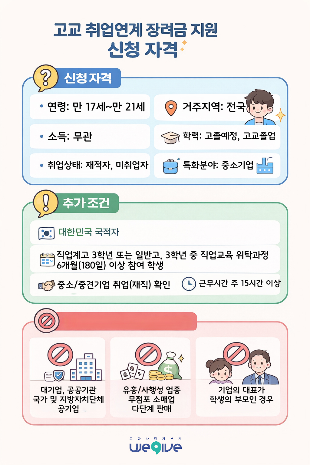 그런 청년에게 “네 시작을 응원한다”고 말해주는 정책, 그것이 바로 고교 취업연계 장려금 지원입니다.