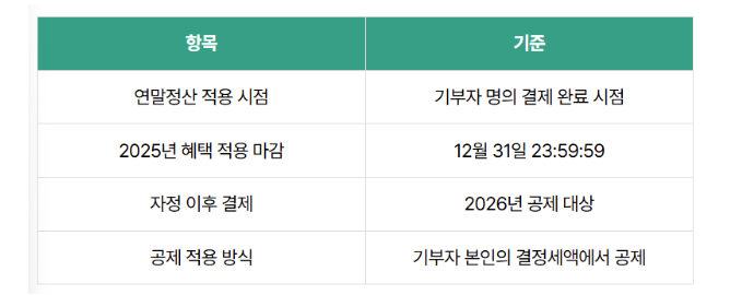 연말정산 혜택을 받기 위해서는 반드시 해당 연도 12월 31일 23시 30분까지 결제 절차를 완료해야 합니다.