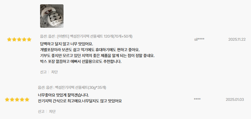 가족들과 나눠 먹을 수 있는 넉넉한 구성의 간식이나 선물용으로 부담 없는 답례품을 찾는 분께도 잘 어울립니다.