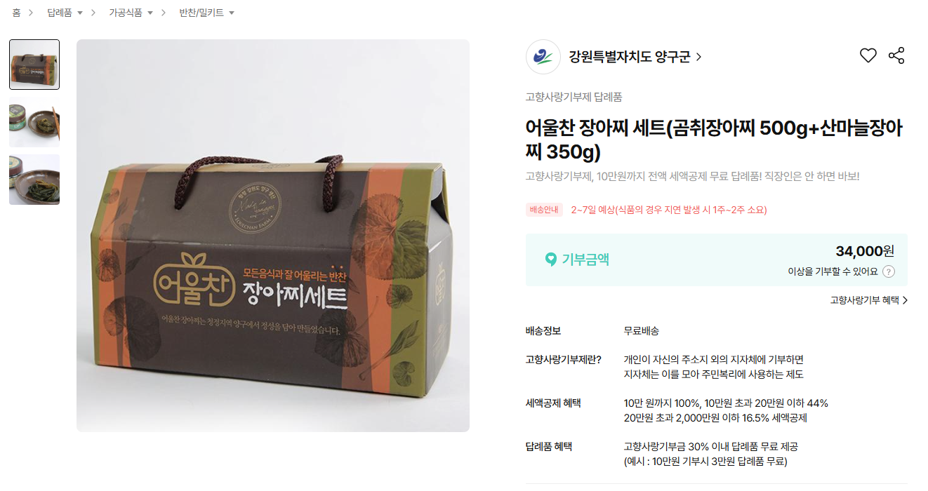 답례품 보러가기-어울찬 장아찌 세트(곰취장아찌 500g+산마늘장아찌 350g)