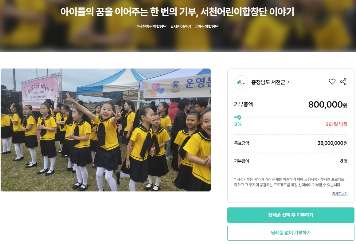 ▶ ‘아이들의 꿈을 이어주는 한 번의 기부, 서천어린이합창단 이야기’ 지정기부, 지금 보러 가기