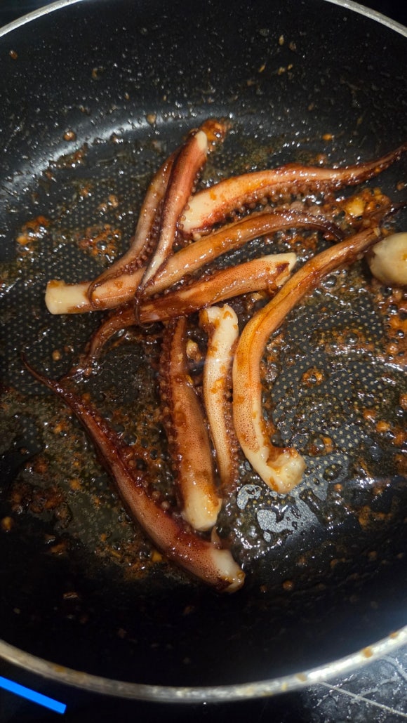 오징어 무국 끓이고 해물볶음 우동 에도 넣고
