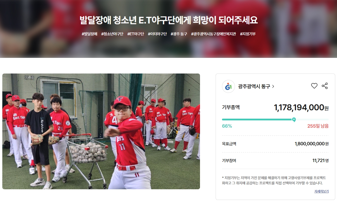 광주 동구에는 특별한 야구단이 있습니다. 발달장애 청소년들이 함께 모인 ‘E.T 야구단’입니다.