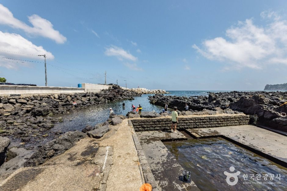 법환포구는 ‘막숙개’라고도 불리는데 ‘막숙’은 고려 말 최영 장군이 이곳에 막사를 치고 군사들의 숙소로 사용하여 적군을 물리쳤다는 데에서 유래했다. 제주 올레 7코스에 속해 있어 도보 여행객들이 주변의 경치를 감상하기에 좋다. 이곳에서 바다 위에 범섬, 섶섬, 문섬, 새섬을 한눈에 볼 수 있다. 해녀 조각상이 설치된 ‘잠녀 광장’이 조성되어 있고, 낚시를 즐기는 사람들의 모습도 볼 수 있어 바다와 자연스럽게 조화된 제주만의 아름다운 분위기를 느낄 수 있다. 제주도의 다른 포구들과 마찬가지로 용천수가 남아 있는데, 깨끗하고 맑은 물을 보는 것만으로도 시원함을 선사한다. 주변에는 게스트하우스나 카페, 식당 등 다양한 편의시설이 있어, 여행객들이 더욱 여유롭고 편하게 서귀포 바다의 경치를 만끽할 수 있다.