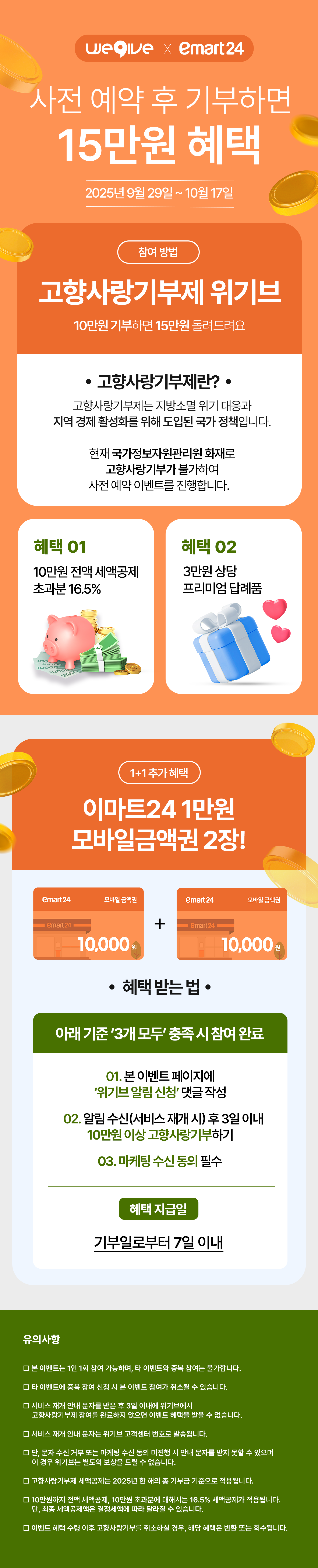 - [위기브X이마트24] 고향사랑기부하고 이마트24 1만원*2 상품권 받자!