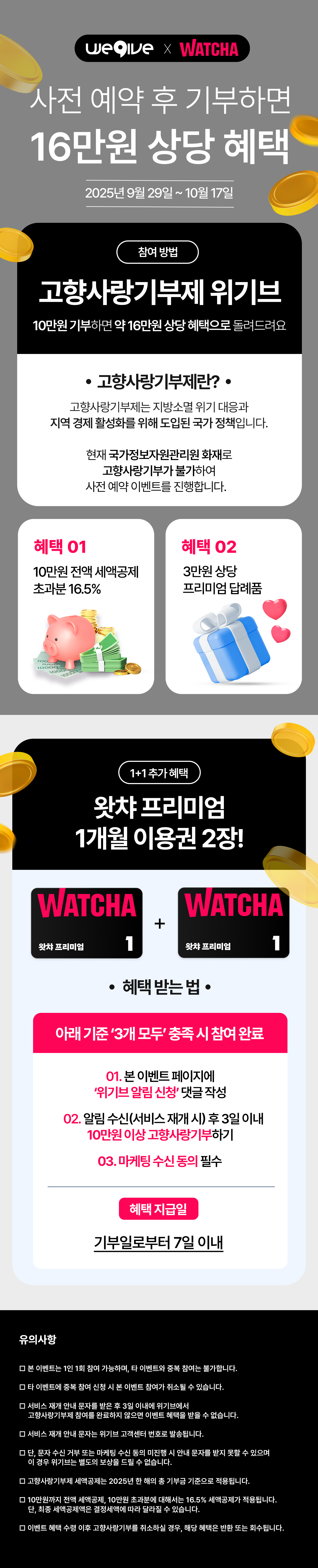 - [위기브X왓챠] 고향사랑기부하면 왓챠 1개월 구독권 증정!