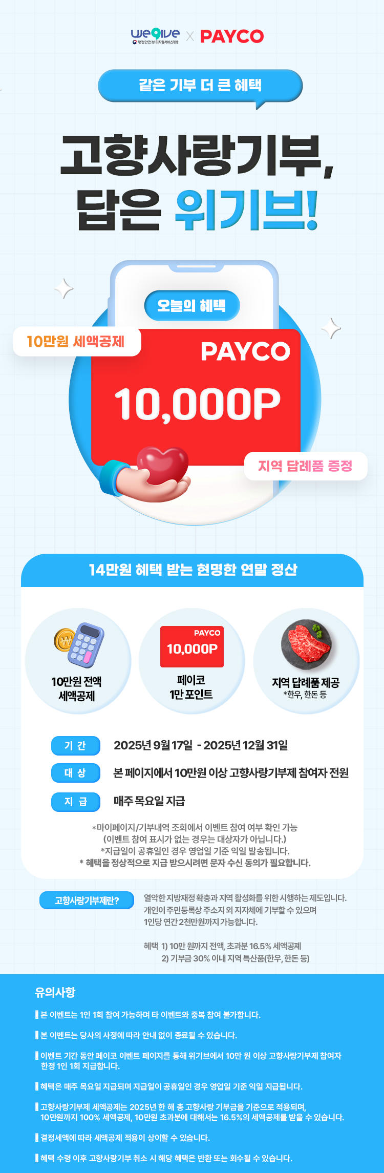 - [위기브X페이코] 고향사랑기부하고 페이코 1만 포인트 받자!