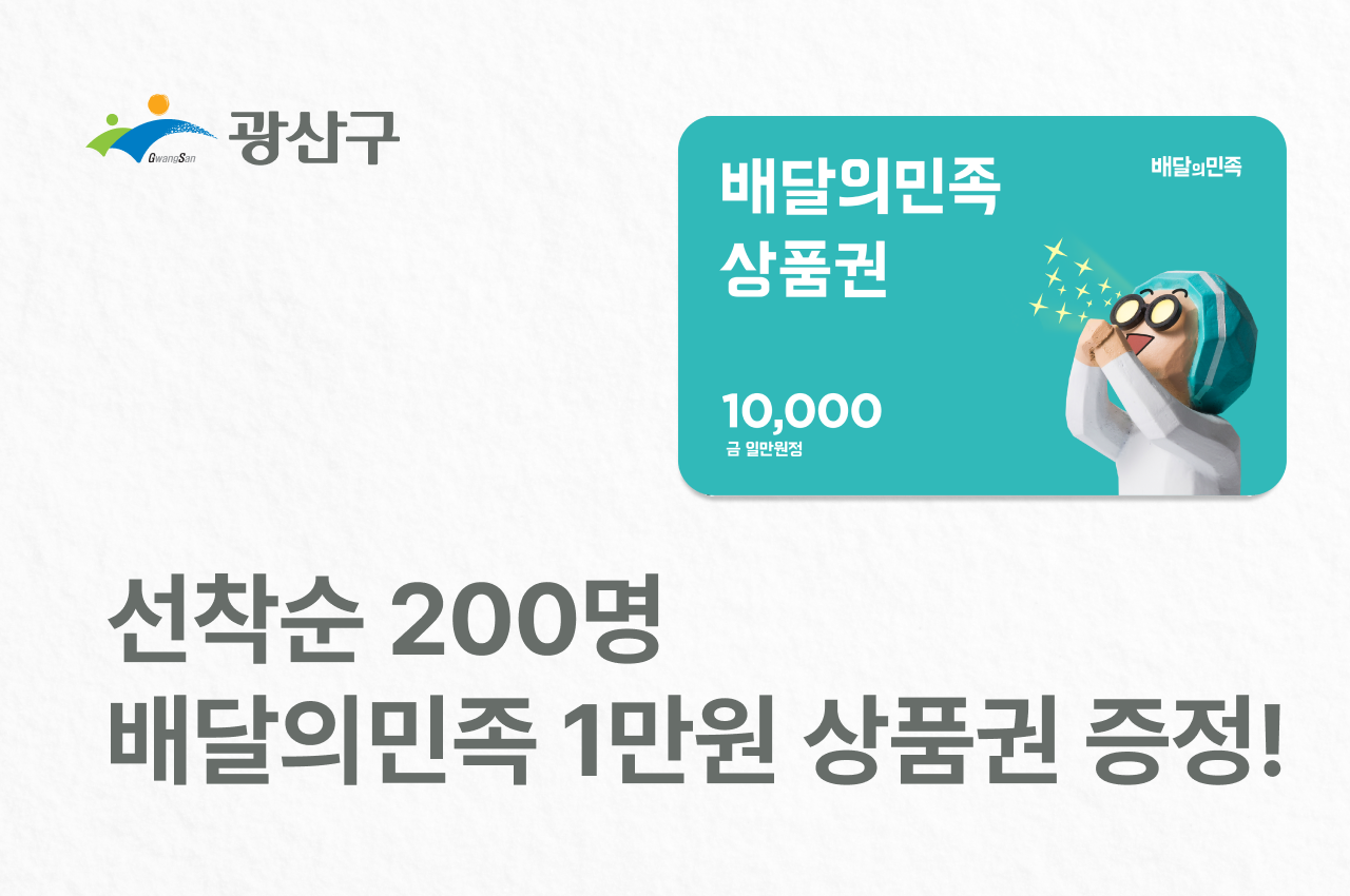 - [광산구] 선착순 200명 배달의민족 1만원 상품권 증정!