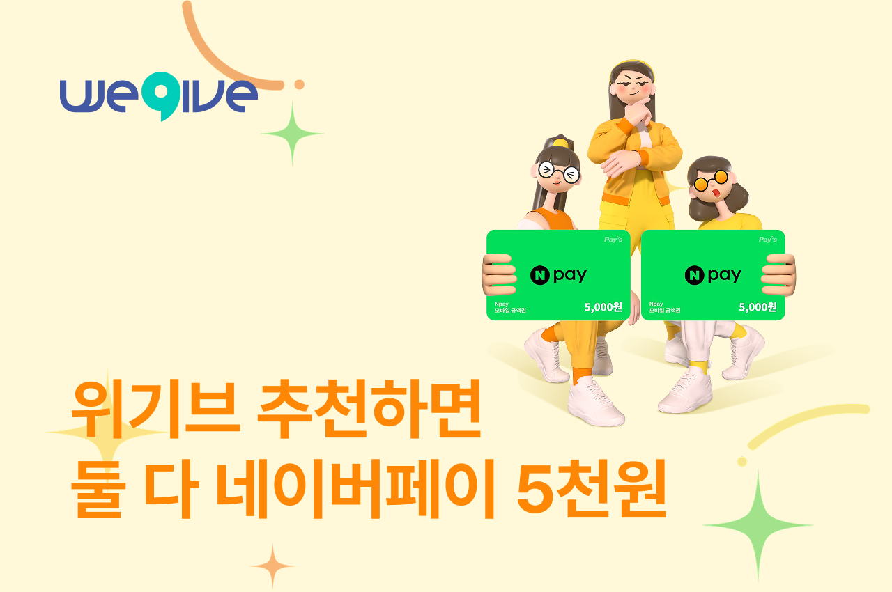 - 위기브 추천하면 나도 친구도 네이버페이 5천P 증정!