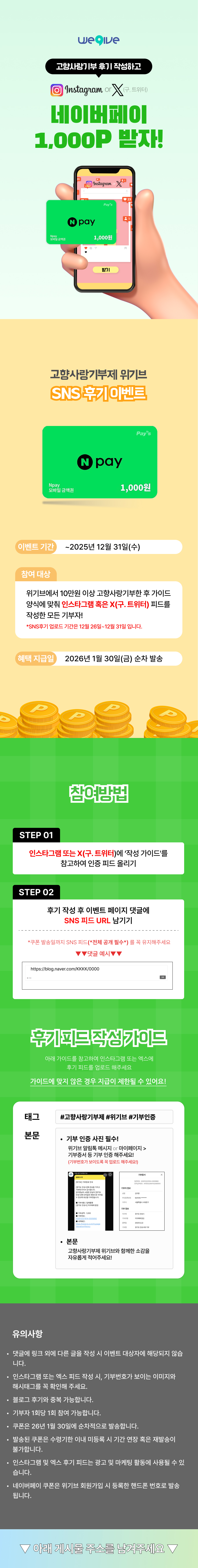 - 위기브 기부 SNS 인증하면 네이버페이 1천P 증정!