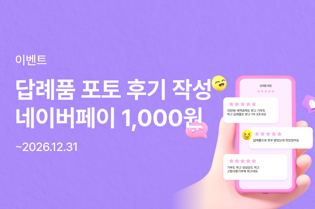 - 답례품 포토 후기 작성하고, 네이버페이 1,000원 받자!