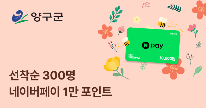 - [강원 양구군] 선착순 300명 네이버페이 1만P 증정!