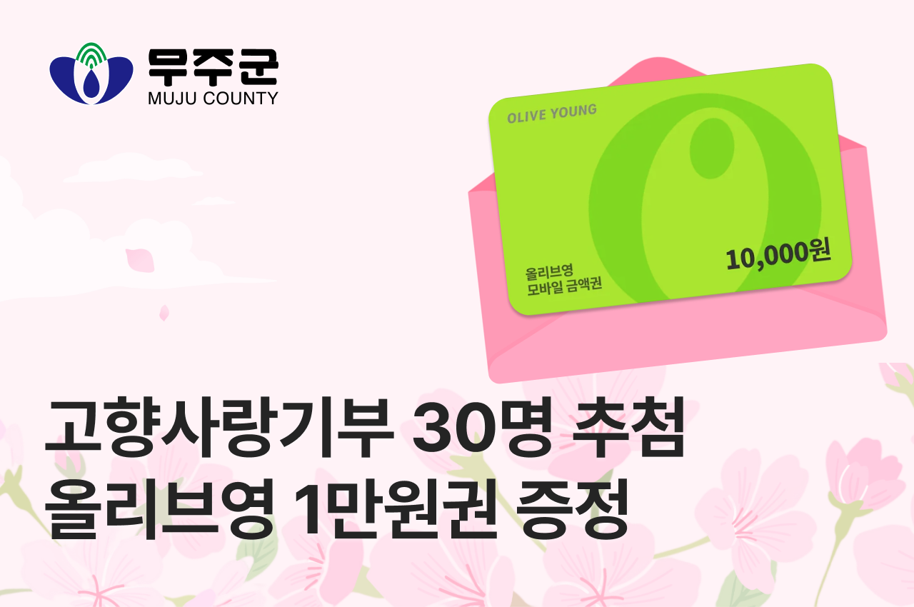 - [전북 무주군] 고향사랑기부하면 30명 추첨 올리브영 1만원권 증정!