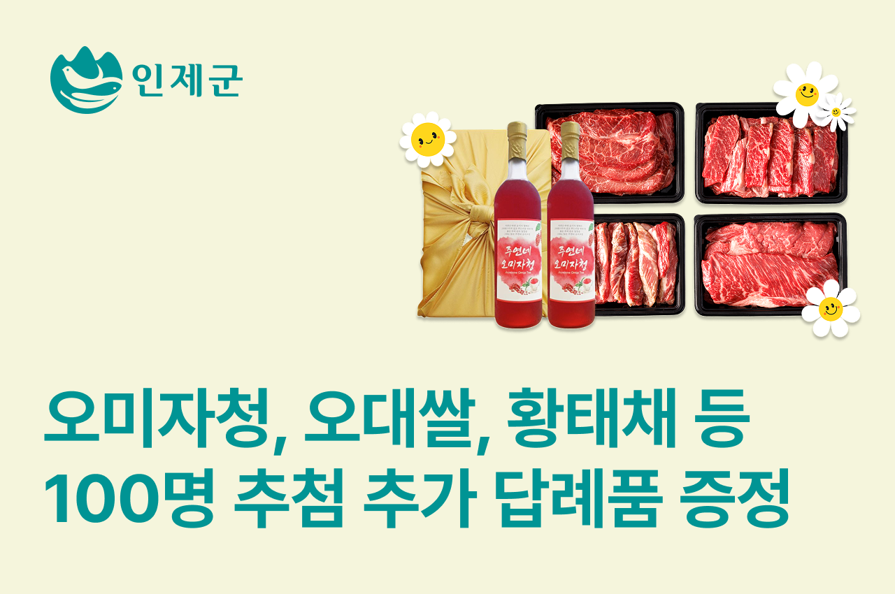 - [강원 인제] 인제군 고향사랑기부하면 추첨 100명 추가 답례품 증정
