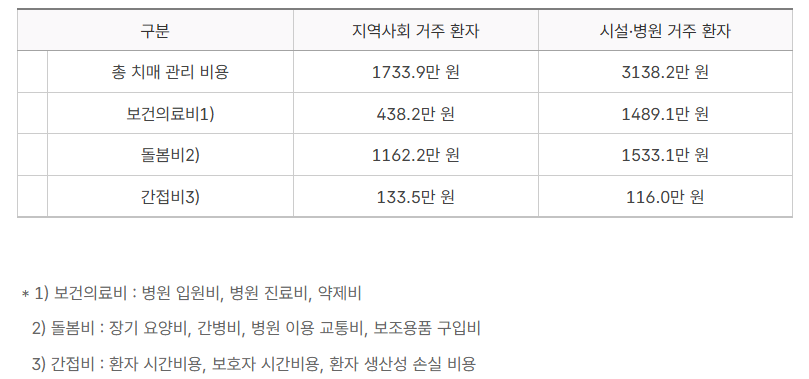 2023년 치매역학조사에 따르면 치매환자 관리비용에서 보건의료비(25%)보다 돌봄비(67%)가 훨씬 높은 비중을 차지하고 있습니다.