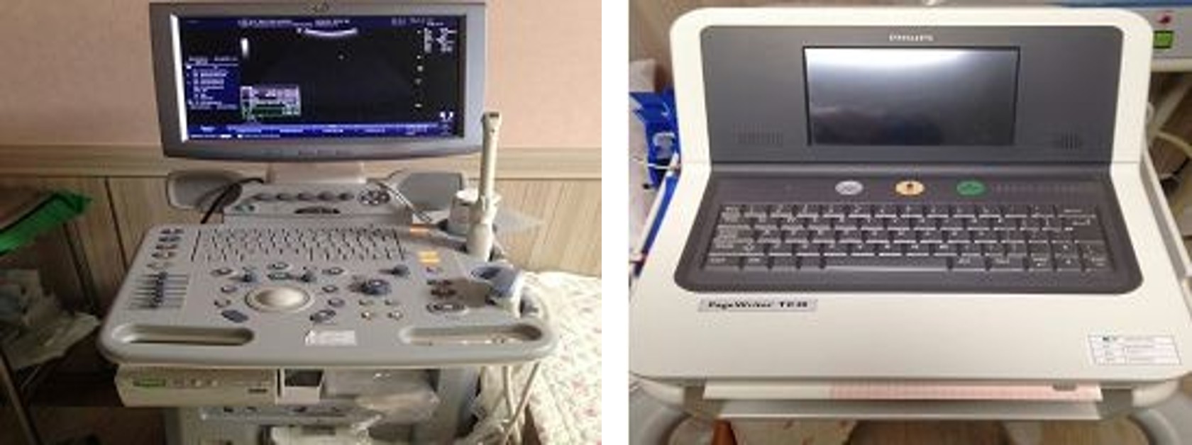 ▲ 건양대학교부여병원의 노후 된 장비 모습들 (좌)초음파기 (우)태아감시장치 ©부여군