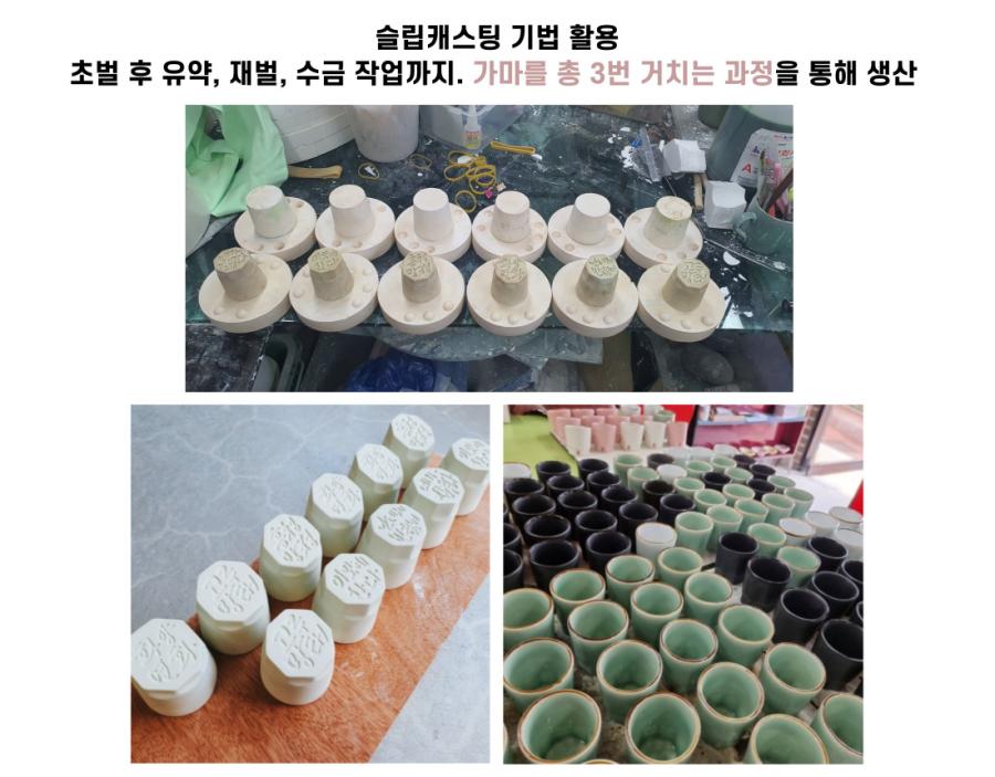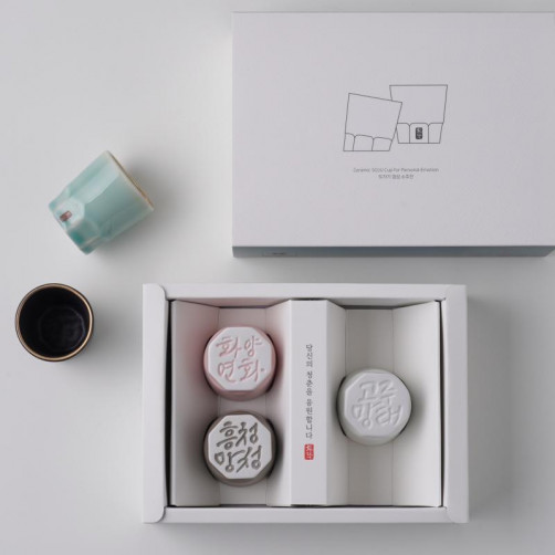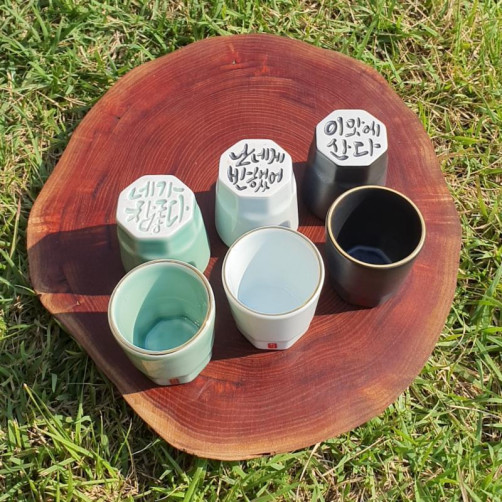 광주 우수공예문화상품 지정 도자 잔 세트(소주잔 3개+엽서+쇼핑백포장)