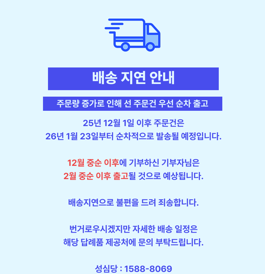기부금 결제 후에는 답례품 및 서비스 특성으로 인하여 취소가 불가능합니다.