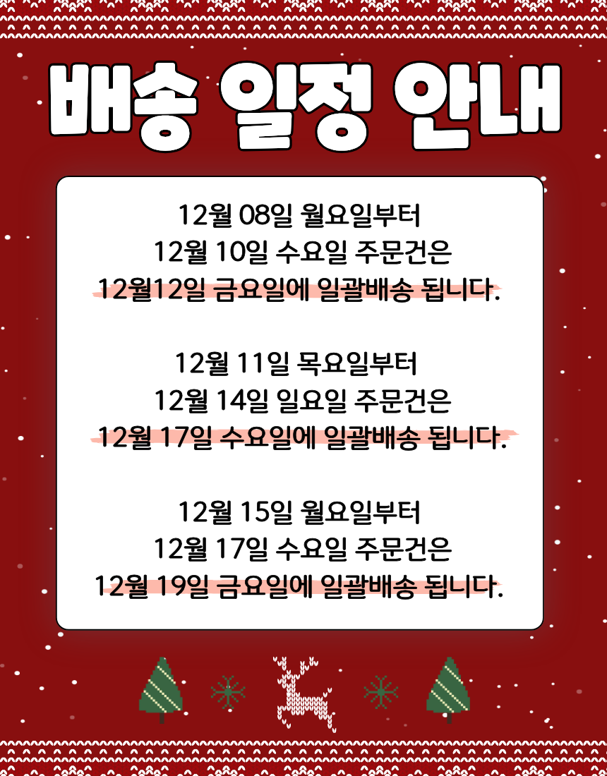 • 그 외 기간은 보냉종이박스 + 아이스팩(중형)1개로 구성되어 나가니 아이스박스가 필요하신 고객님은 옵션에 선택하시길 바랍니다.