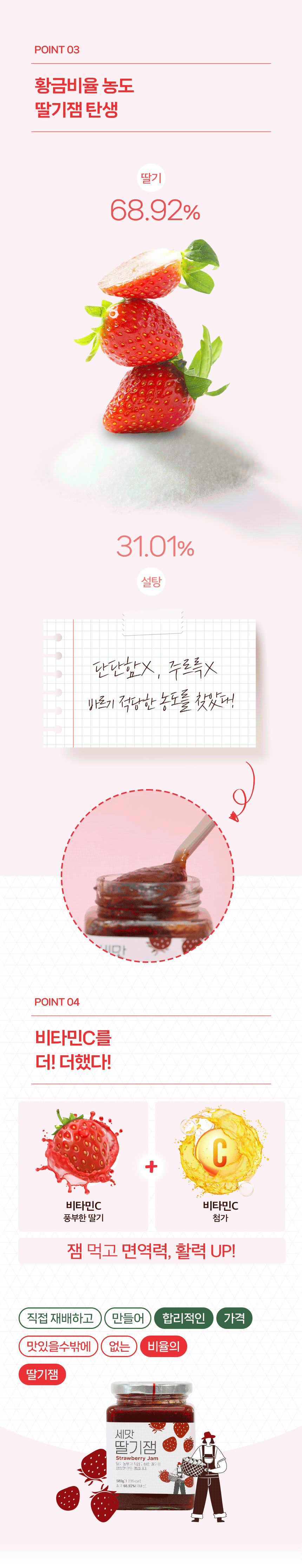 국내산 세맛딸기잼(260g*2병, 580g*1병)