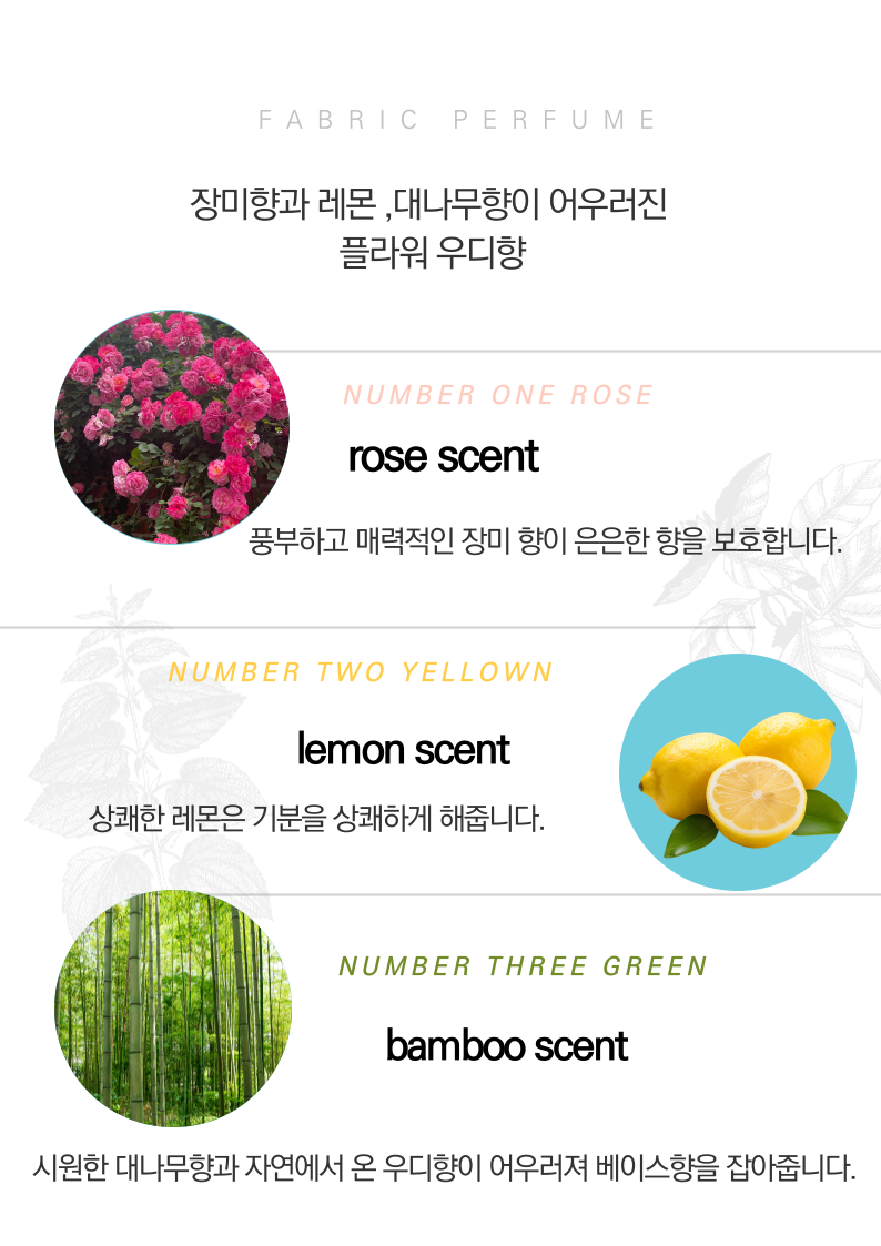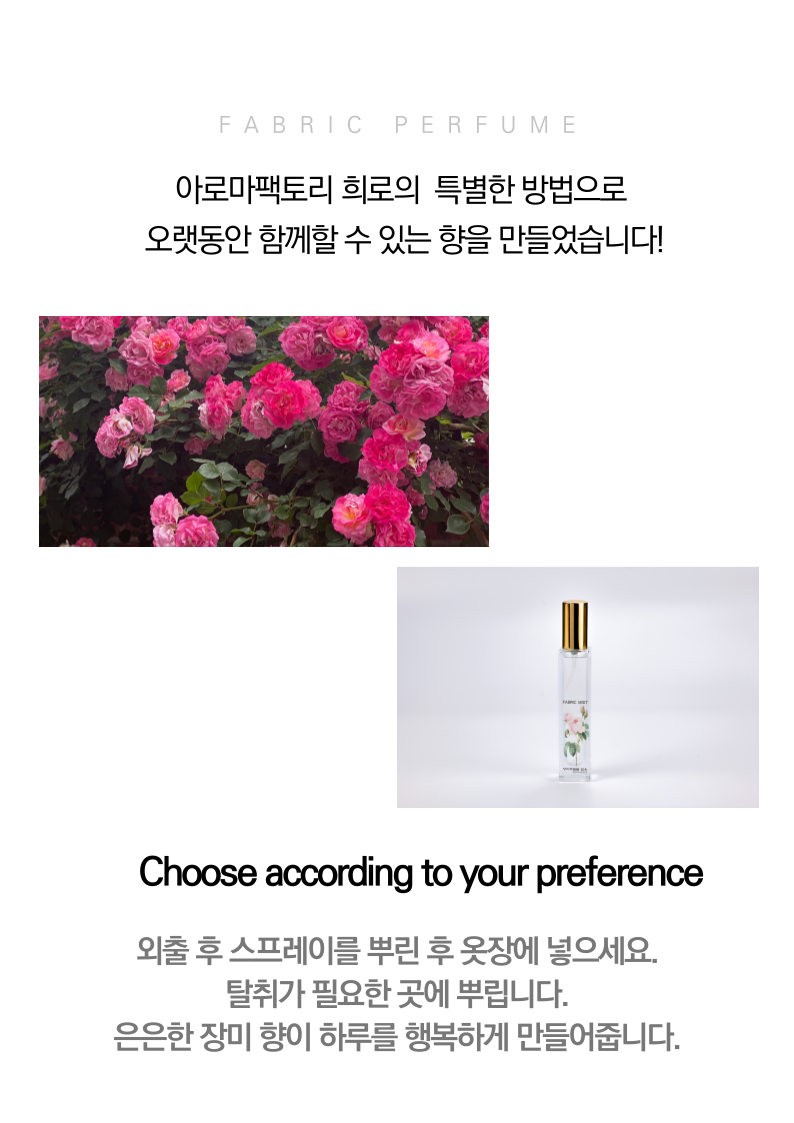 | 제품 주요 사양 | 장미페브릭 퍼퓸미스트100ml & 50ml |