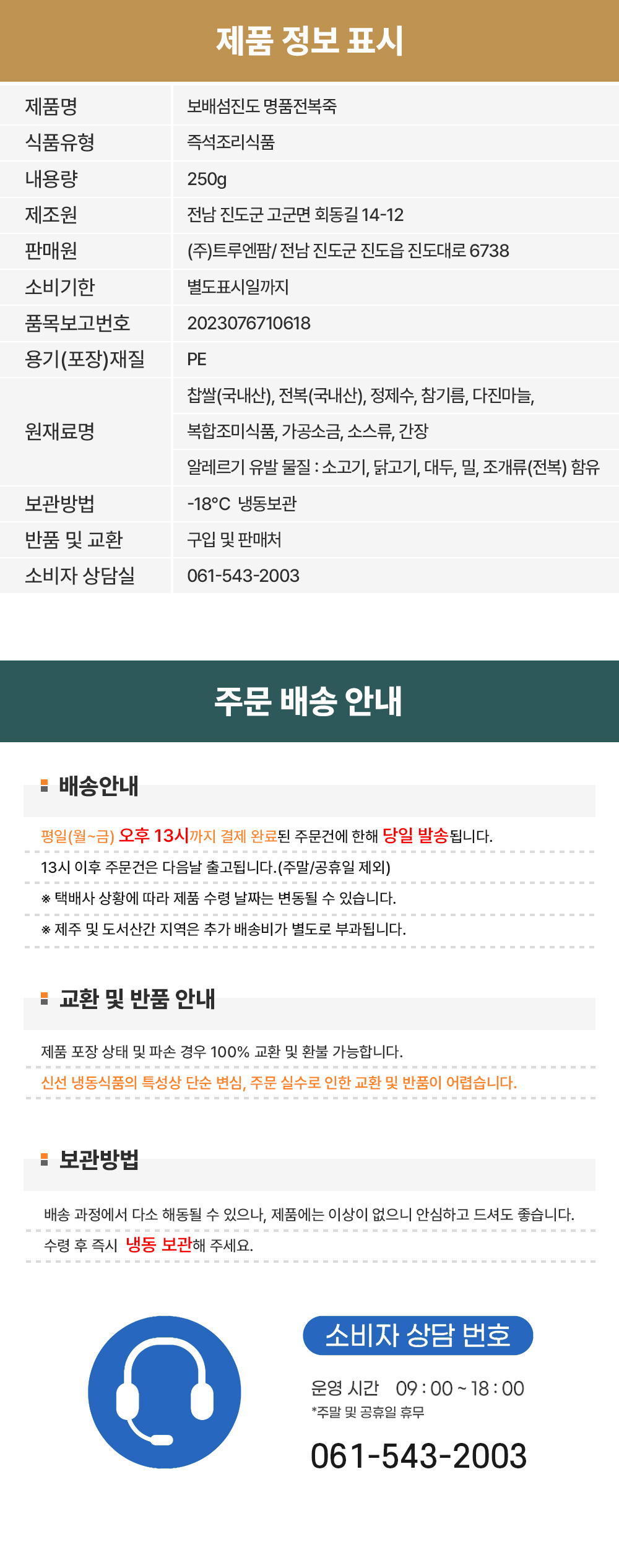| 소비자상담 관련 전화번호 | 061-543-2003 |