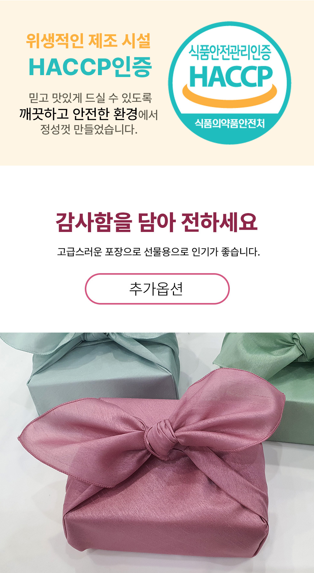 | 원재료명 (「농수산물의 원산지 표시 등에 관한 법률」에 따른 원산지 표시 포함) 및 함량(원재료 함량 표시대상 식품에 한함) | 상세정보 별도표기 |