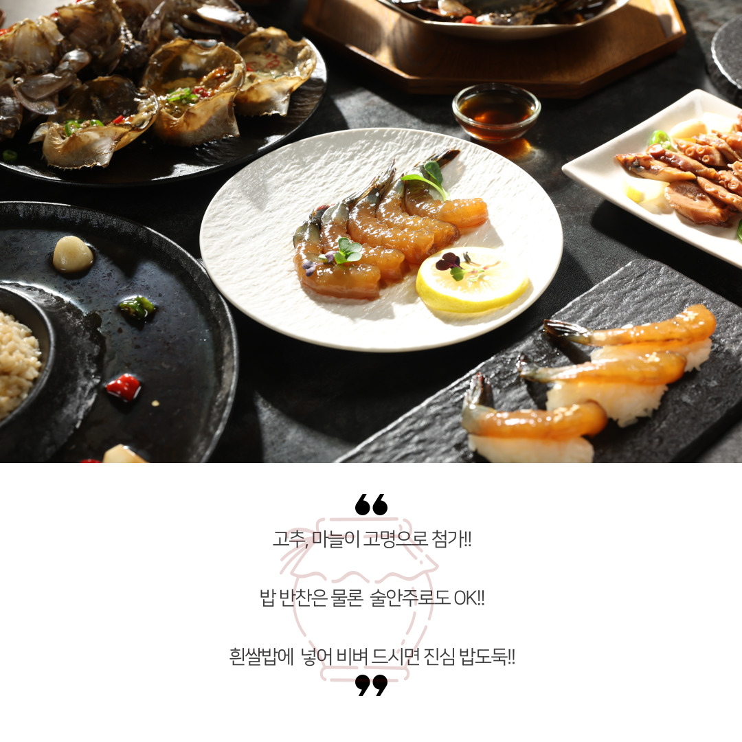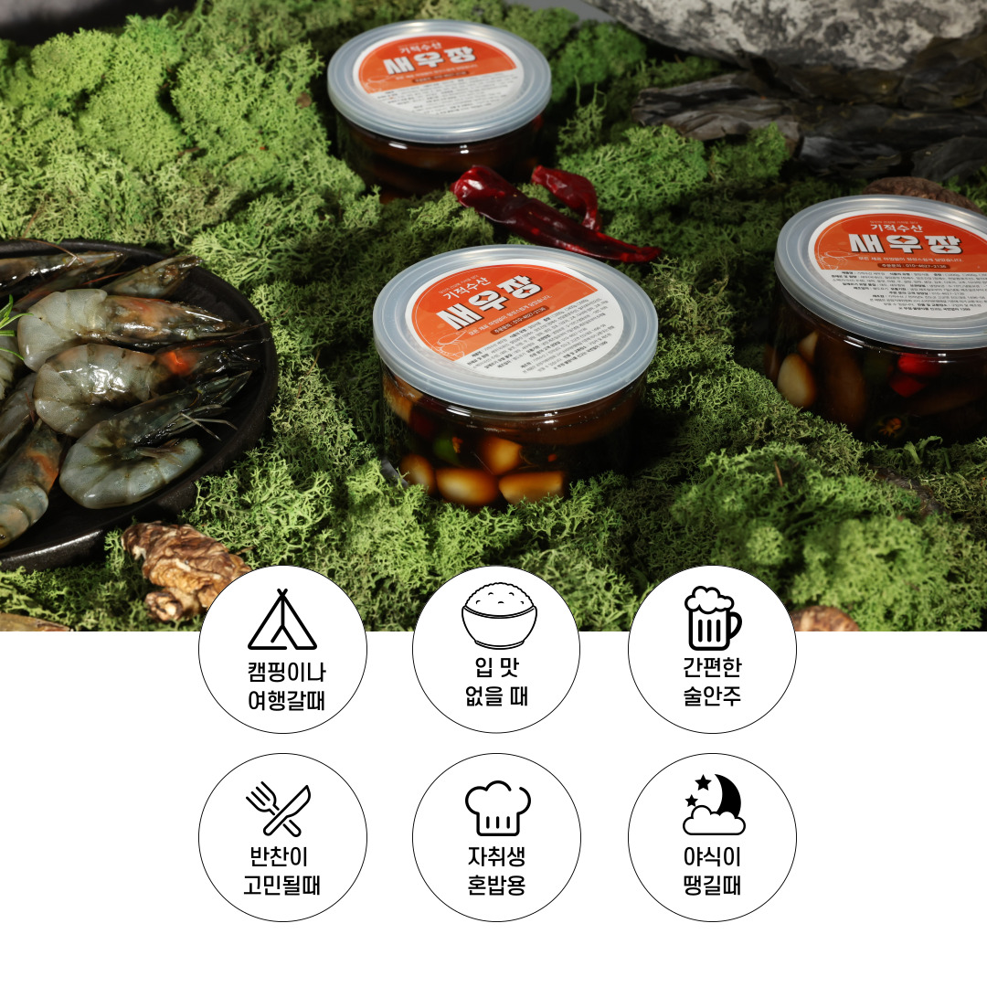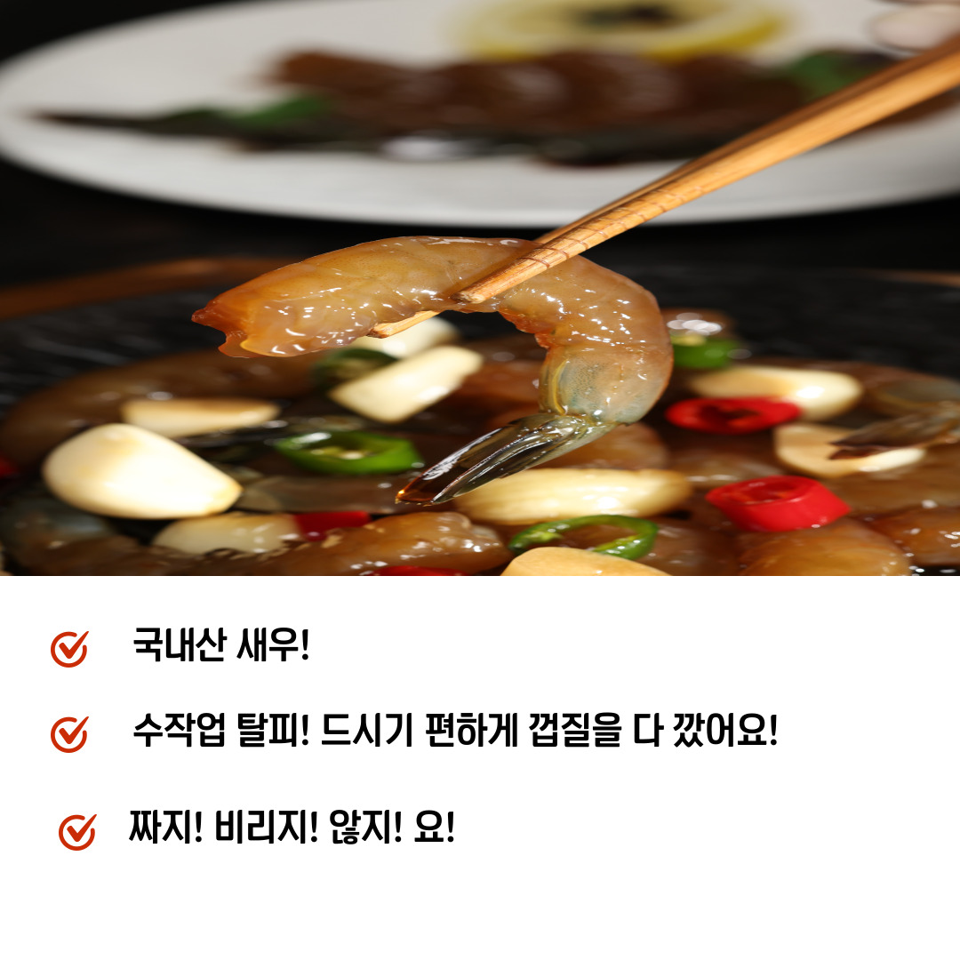 원재료명 (「농수산물의 원산지 표시 등에 관한 법률」에 따른 원산지 표시 포함) 및 함량(원재료 함량 표시대상 식품에 한함) | 새우(국내산), 절임용장, 양파, 고추, 마늘 |