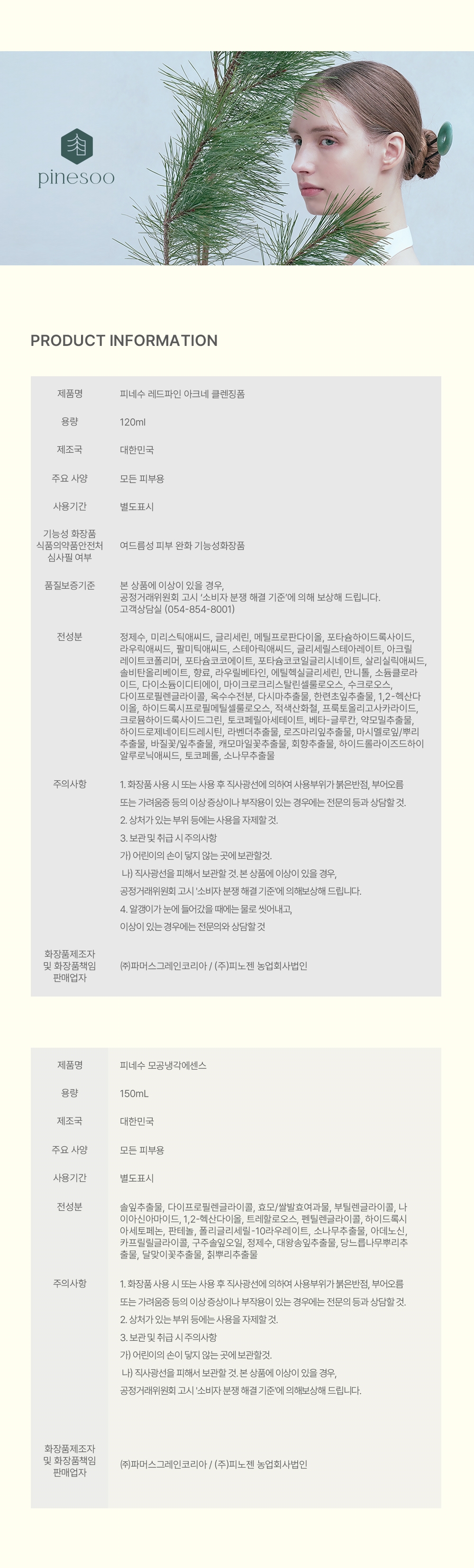 「화장품법」에 따라 기재ㆍ표시하여야 하는 모든 성분 상세정보 별도표기