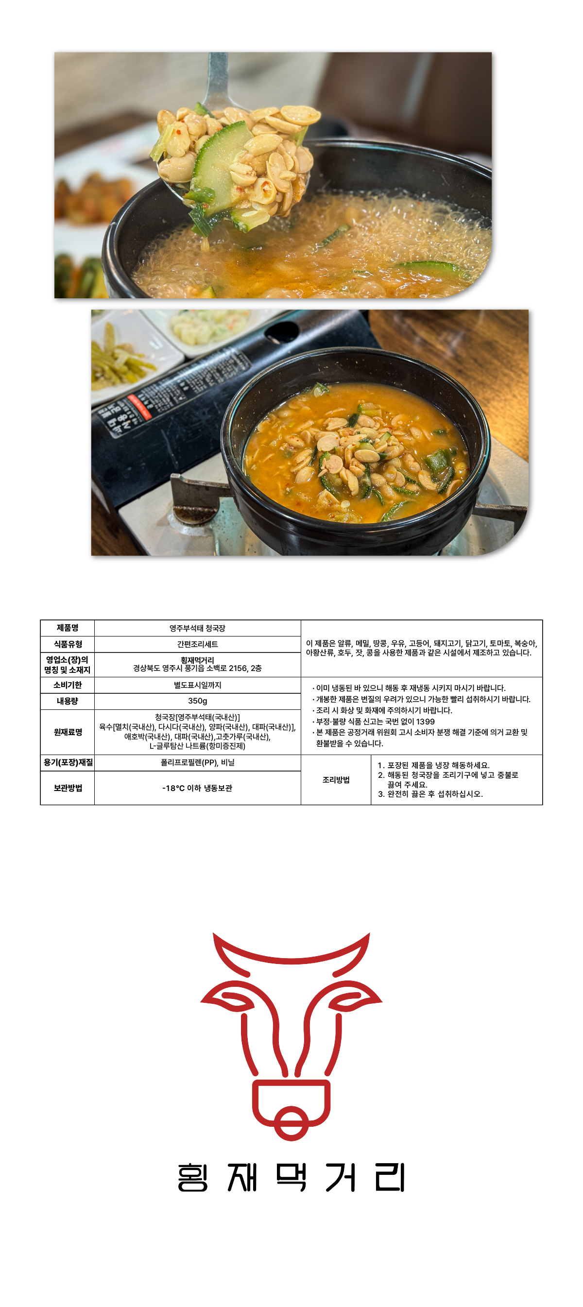 횡재먹거리 밀키트 선물세트(한우불고기 350g*2팩+부석태청국장 350g*1팩)