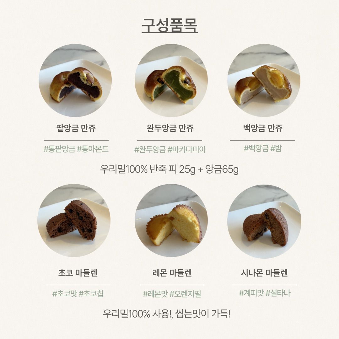 두껍베이커리 우리밀만쥬&마들렌세트 12개(만쥬 8개+마들렌 4개)