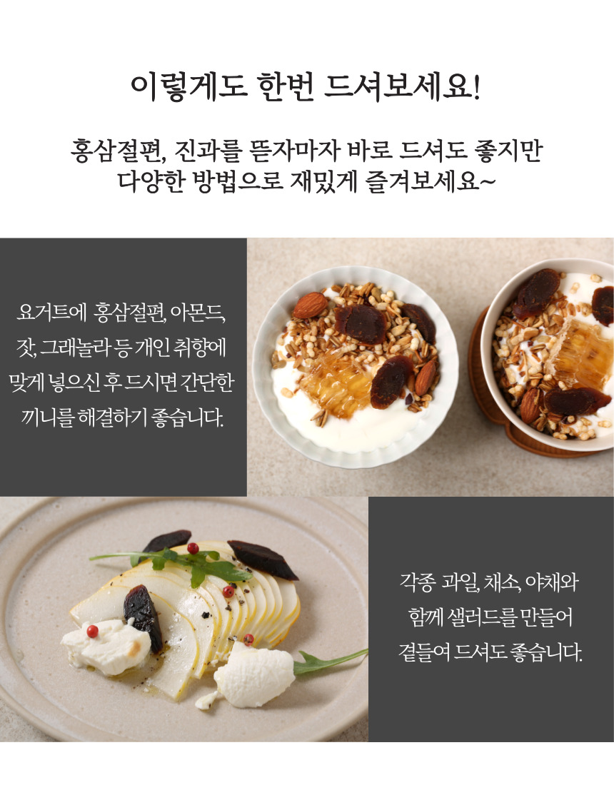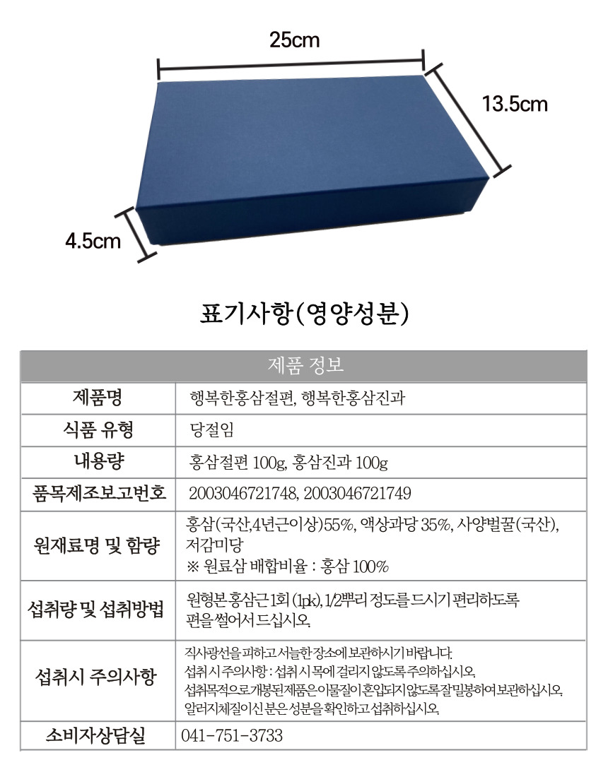 | 포장단위별 내용물의 용량(중량), 수량 | 홍삼절편100g, 홍삼진과100g |